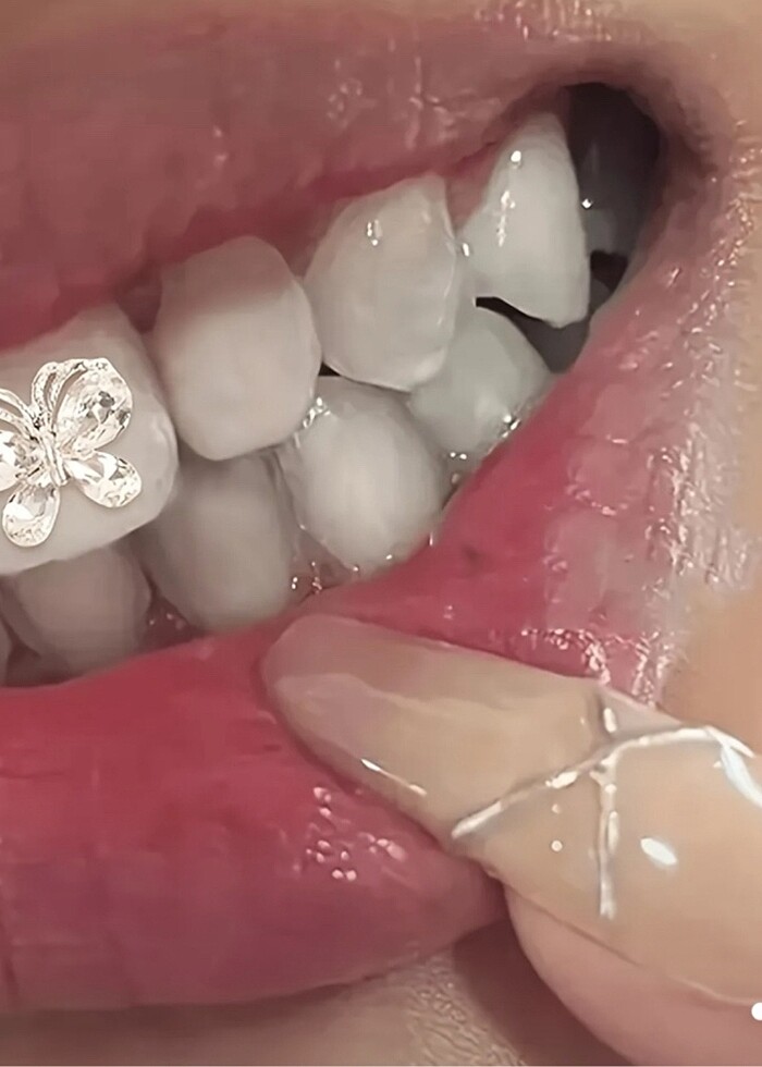 Y2k Coquette Kelebekli Taşlı Teeth Grillz Gems Diş Taşı Aksesuar