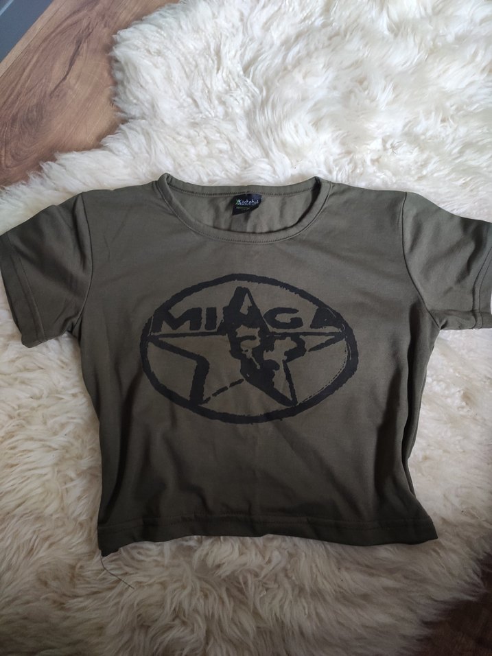 Y2k Grunge Punk Kadın Haki Baskılı Kısa Kollu Süet Tişört