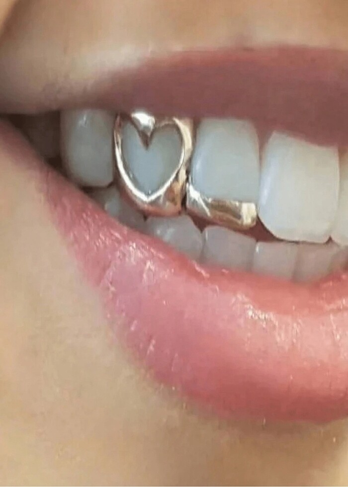 Y2k Hip Hop Gümüş Rengi Kalpli İkili Tooth Grillz Gems Diş Taşı