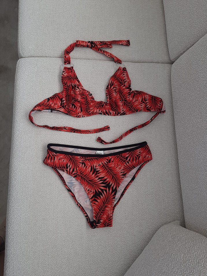 #Vintage Kırmızı boyundan bağcıklı bikini takımı, bağcık detaylı ve yaprak desenli bikini takımı az kullanıldı temiz Dolabımda farklı renkte modellerde bikini takımları bulabilirsiniz marka temsilidir