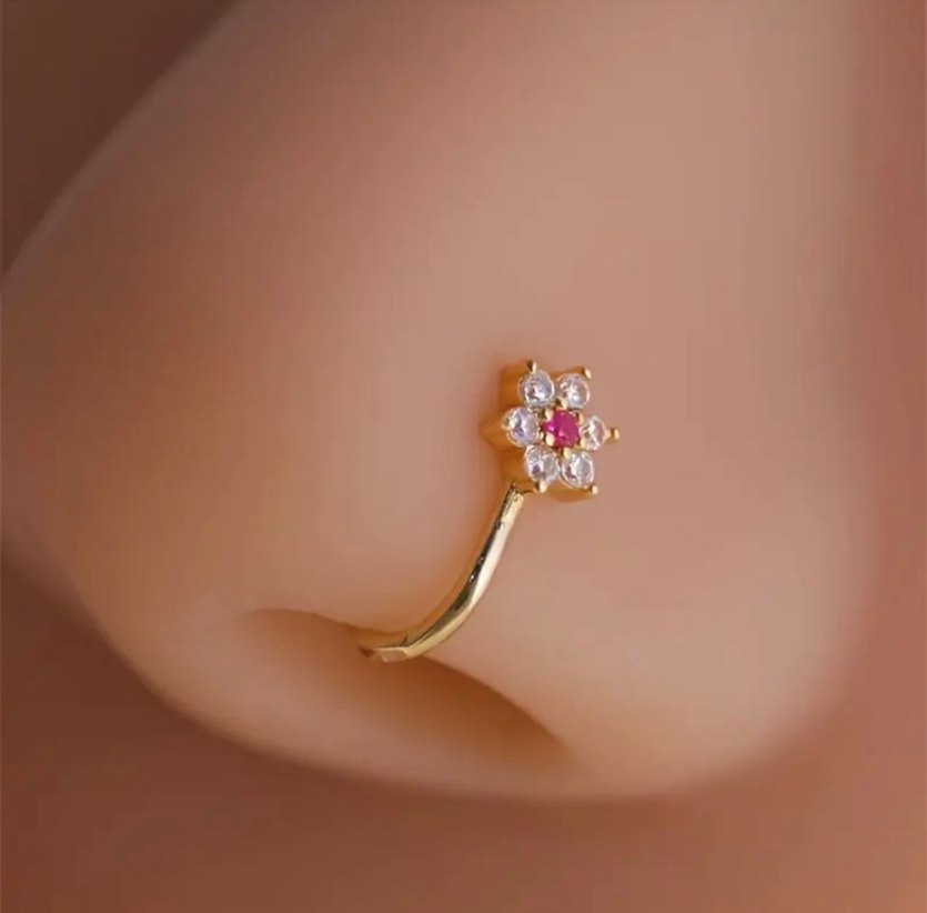 Y2k La Saade Çiçekli Taşlı Burun Hızma Piercing