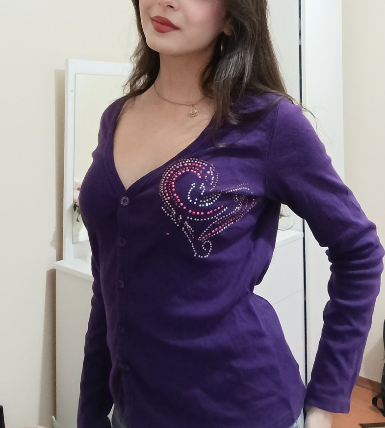 mor düğmeli taş işlemeli y2k vintage hırka pamuklu çok tatlı bir parça s beden iki koltukaltı arası 44 boy 56 #y2k #fairycore #vintage #babydoll #90s #00s