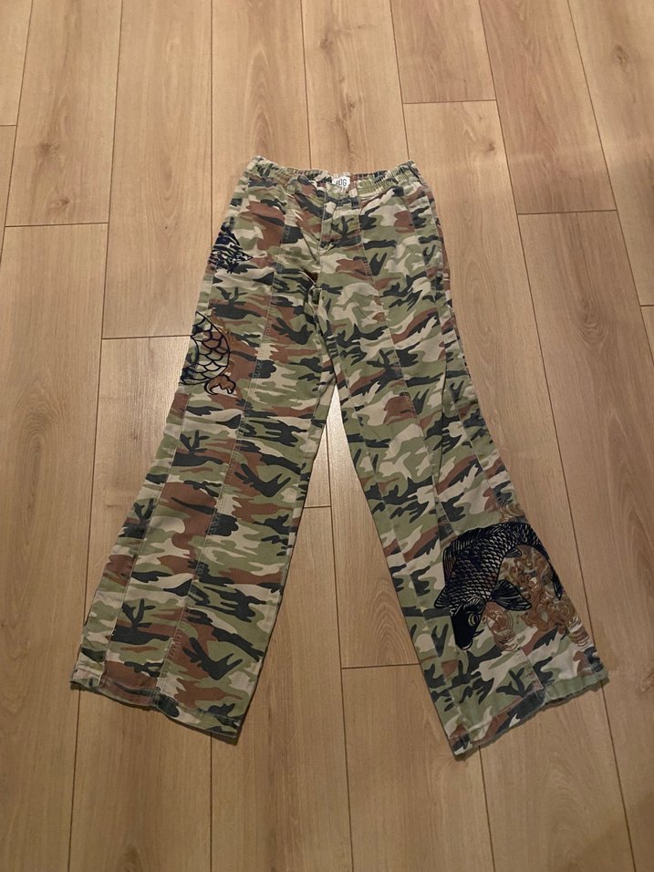 Ejderha ve balık desenli. Fermuarında küçük bi yırtık var dikilebilir. Kilo aldığım için olmuyor #y2k