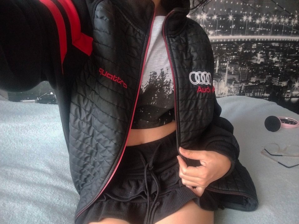 Orijinal Audi marka fermuarlı önü ve uzun kollu, siyah renkli, yumuşak ve sıcak kumaştan spor ceketi. Askısız yakaya ve baskılı desene sahiptir.