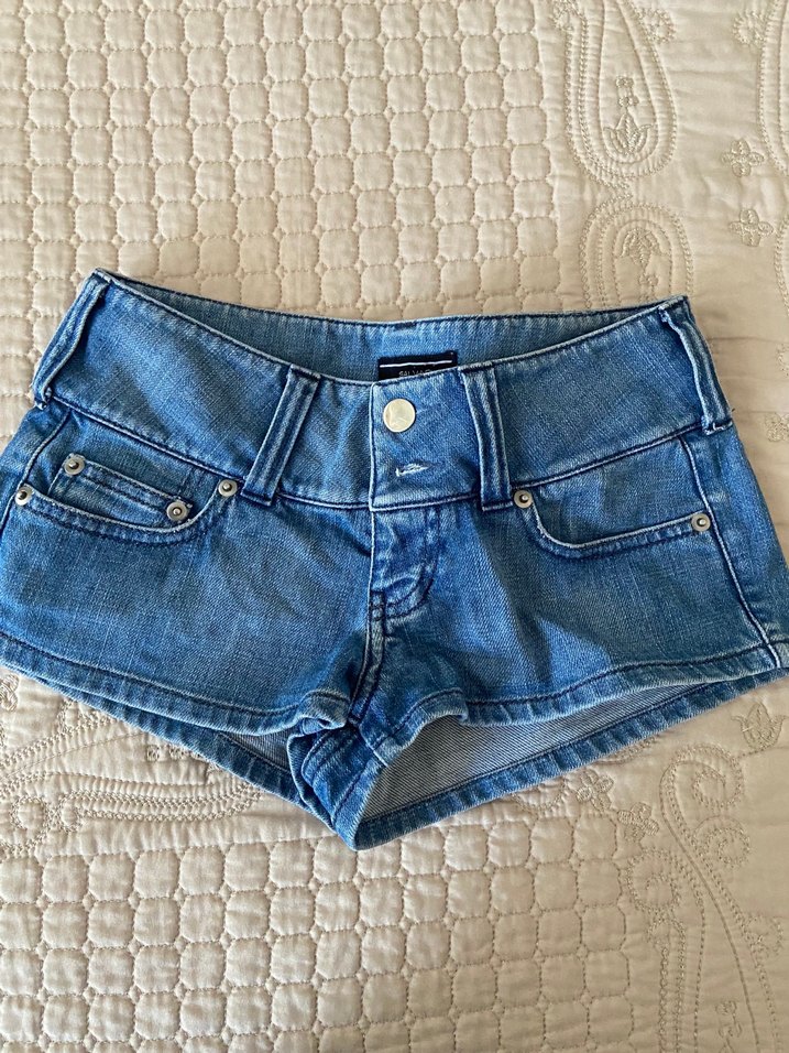 Y2k Düğmeli, parlak mavi renkli, kısa ve dar kesim mini kot şort. Günlük sokak tarzı için uygundur.