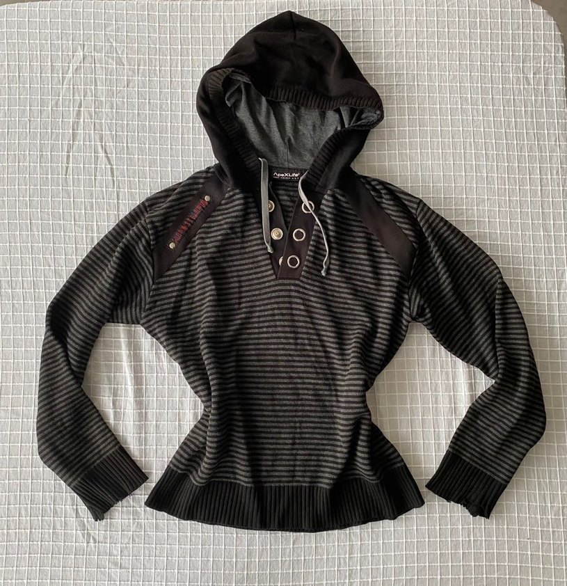 Y2k vintage downtown siyah çizgili kapüşonlu sweatshirt