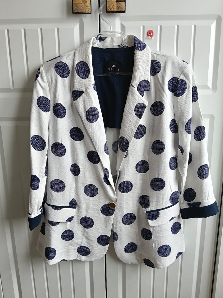 Markası SETRE'dir,bilen bilir çok güzel,çok kaliteli be çok pahalı büyük bir marka.Bu ceketi de çok güzel ve çok özel. Tüm detayları fotoğraflarda var,inceleyerek alınız.Yazlık/Mevsimlik ince bi ceket,ketenimsi bir dokusu var.%89Viscon.Son fotoğrafta gözüktüğü gibi çok belli olmayan tüylenmeleri var. İki koltuk arası en yaklaşık 53 cm,arka yaka altından boy yaklaşık 63cm.