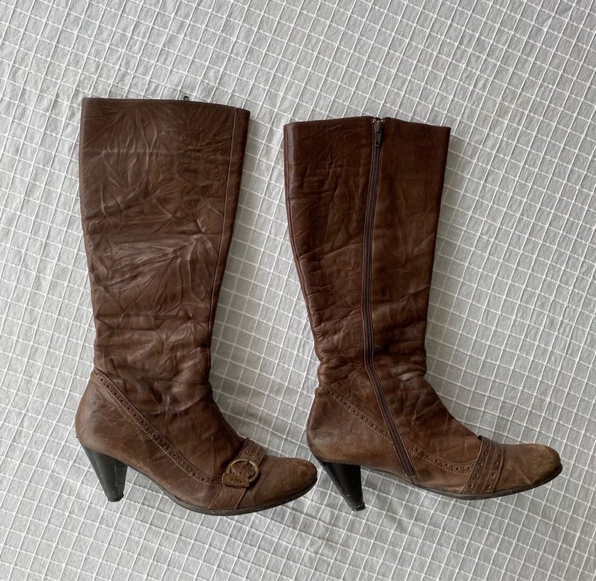 Y2k vintage western kovboy bohem kahverengi taba deri çizme , bazı yerlerde soyulmaları var böyle de kullanılabilir , boyatıladabilir , onun dışında derisi gerçek deri kullanımı çok rahat ve sağlam