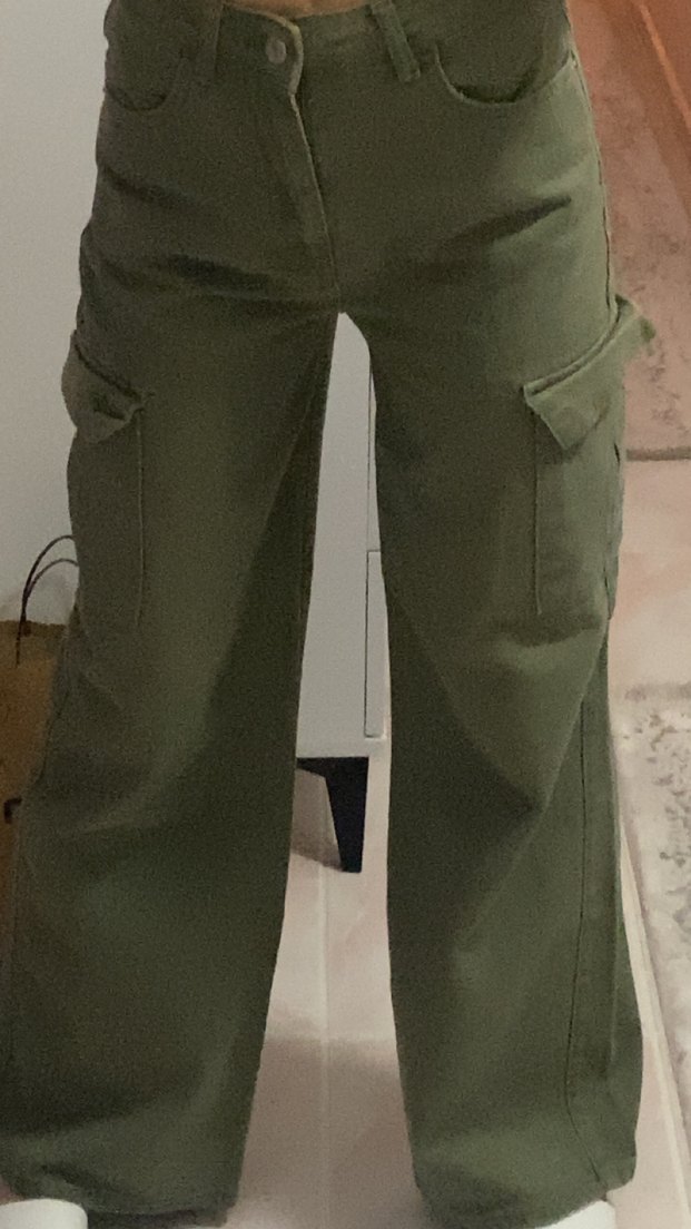 Kadınlar için bol kesim, kamuflaj desenli, kemerli pantolon. Sentetik kumaştan üretilmiş olup günlük sokak stili için uygundur. Aldim fakat hic giymedim hicbir defosu yoktur.