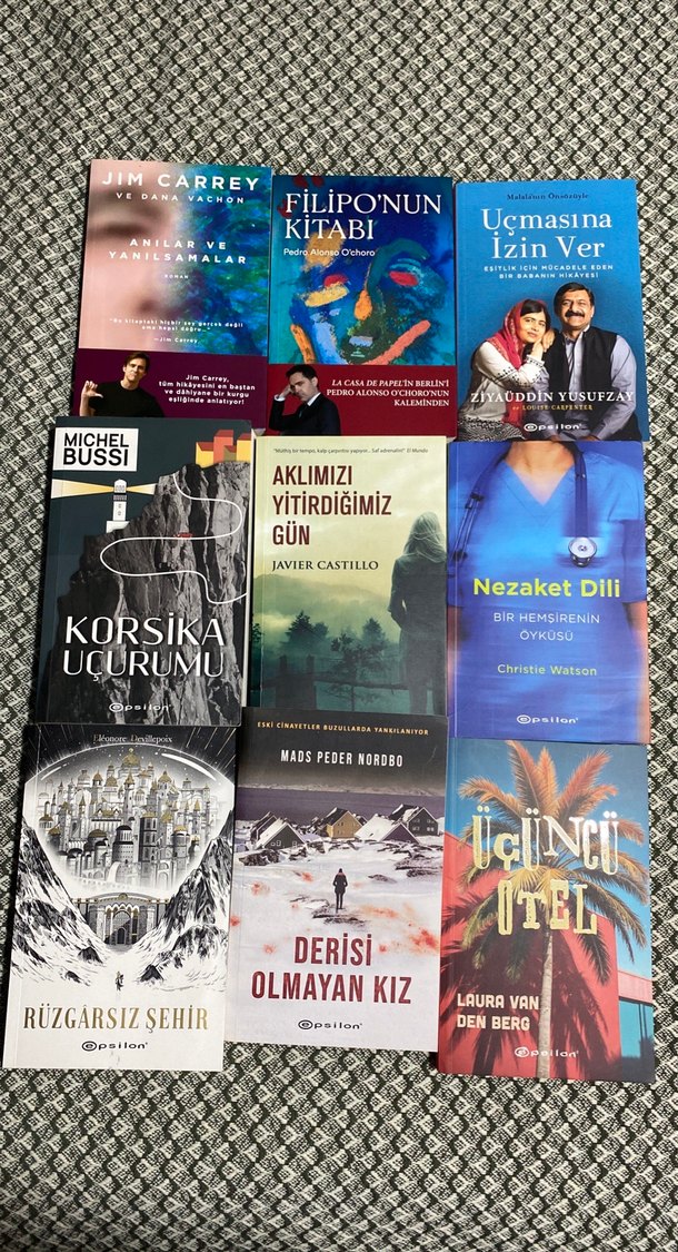 Jim Carrey, Javier Castillo ve diğer yazarların kitaplarını içeren 9 yabancı dil kitabı seti. Çeşitli tür ve konular yer alıyor. Korsika uçurumu Ruzgarsiz sehir Jim carrey Filipo’nun kitabi Uçmasına izin ver Aklımızı yitirdigimiz gün Nezaket dili Üçüncü otel Derisi olmayan kız Epsilon yayınları Sıfırdır çoğu. Fiyat temsilidir. Almadan önce sorunuz.
