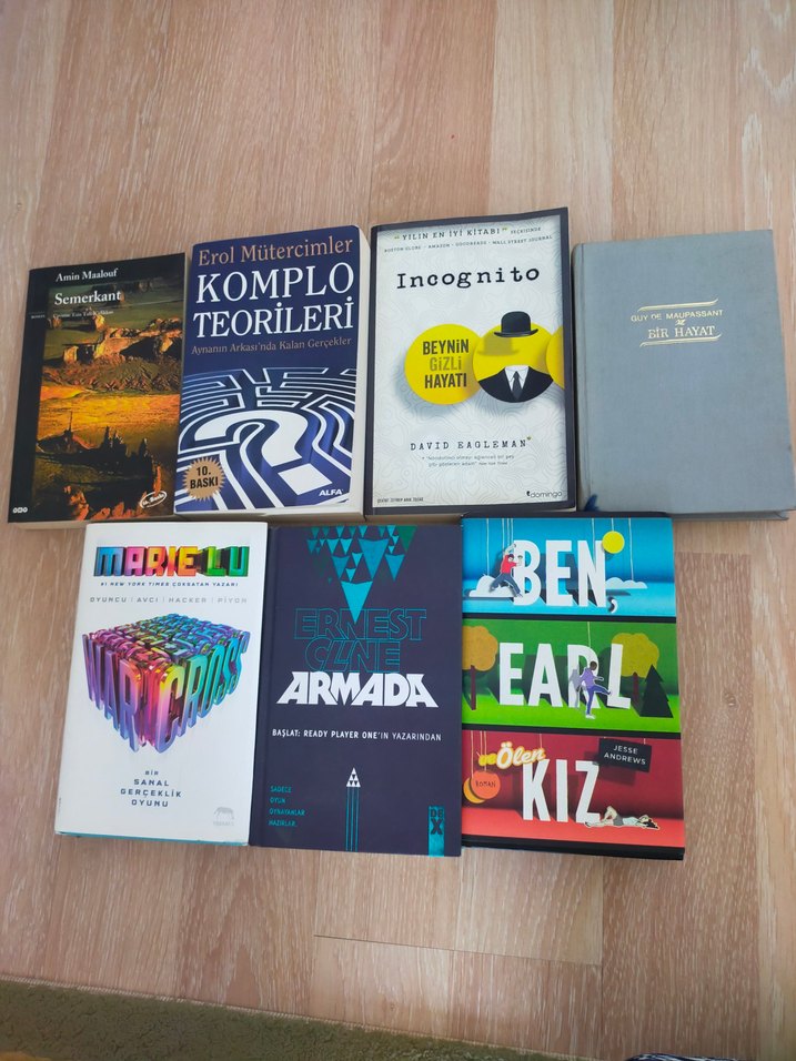 Erol Mütercimler'in 'Komplo Teorileri' ve 'Incognito', 'Armada' gibi farklı yazar ve türlerden yabancı dil kitapları seti. TANESİ 150 TL