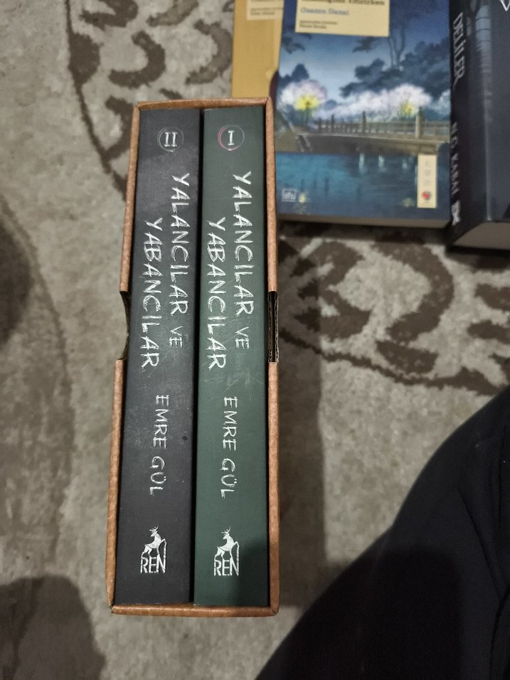 Emre Gül'ün "Yabancılar ve Yalancılar" adlı romanının iki ciltlik seti, kutusunda sunuluyor.