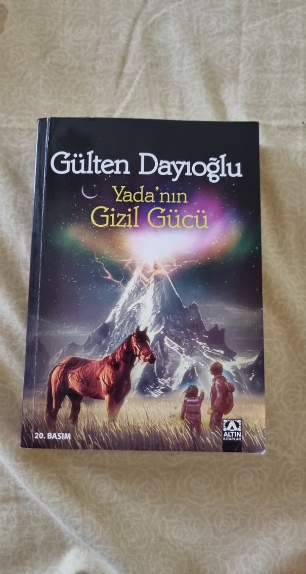 Gülten Dayıoğlu'nun "Yada'nın Gizil Gücü" adlı mitoloji kitabı, at ve iki figürün dağ önünde olduğu mistik kapak tasarımıyla.