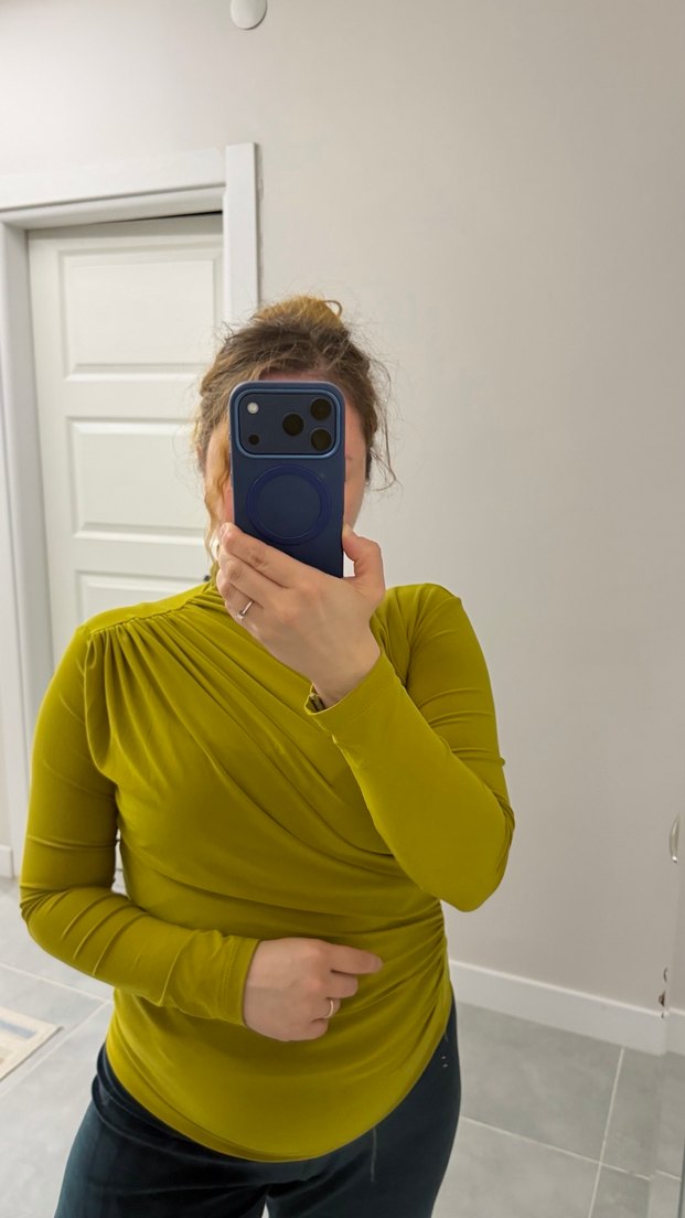 Yağ yeşili bluzu. Sentetik kumaştan, fitted kesim, günlük sokak stili için uygun. 38 beden, Happiness markası. Hediye geldi. 1 kere giydim. Rengini kendime yakıştıramadığımdan satıyorum.