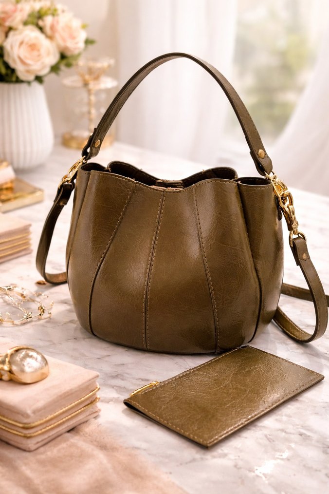 Yağ Yeşili Deri Kadın Omuz Çantası