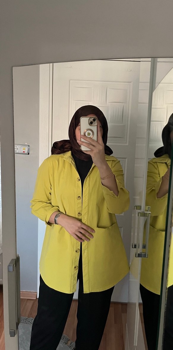 Sarı midi boy gömlek, rahat kesim ve uzun kolludur. Yumuşak ve sıcak kumaştan üretilmiş olup, gündelik kullanıma uygun minimal ve şık bir tarza sahiptir. Desensiz tasarımı sokak stiline uyum sağlar. ️