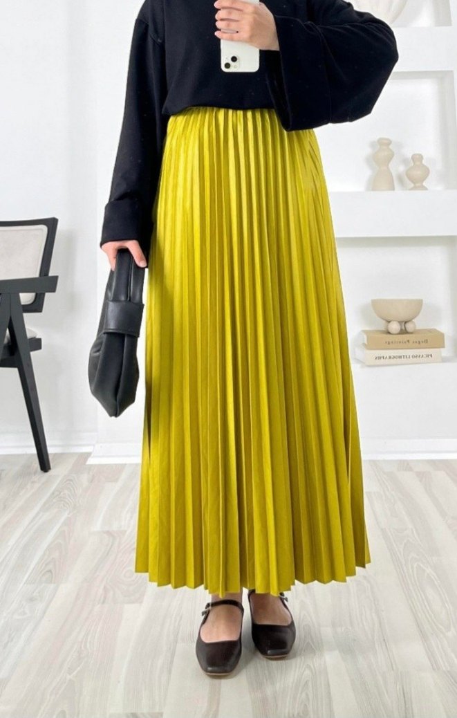 Ürün sıfırdır. S-M beden olup yağ yeşili renge sahiptir. L bedenede olur. Etekleri piliselidir. Etek boy 100 cm'dir. Alıcısına hayırlı olsun