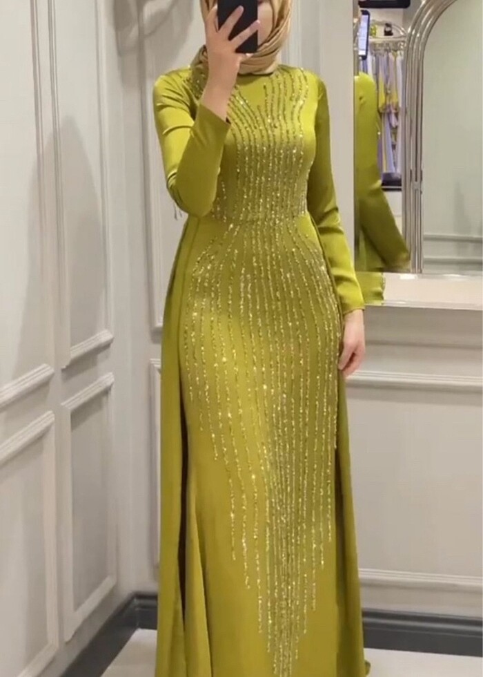 Yağ yeşili taşlı abiye