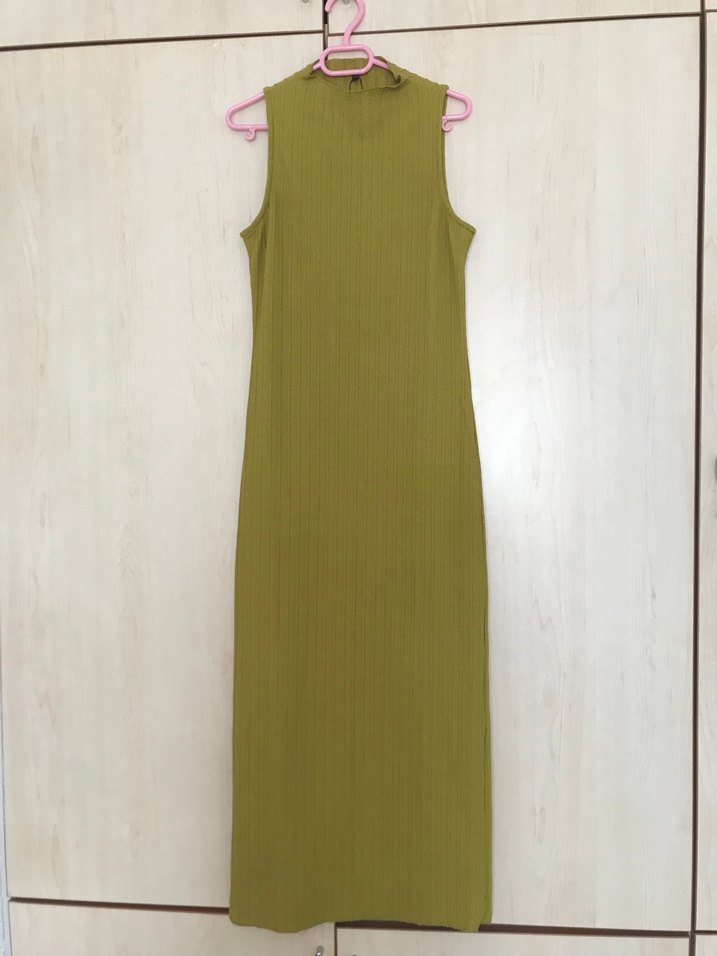 Yağ Yeşili Uzun Elbise