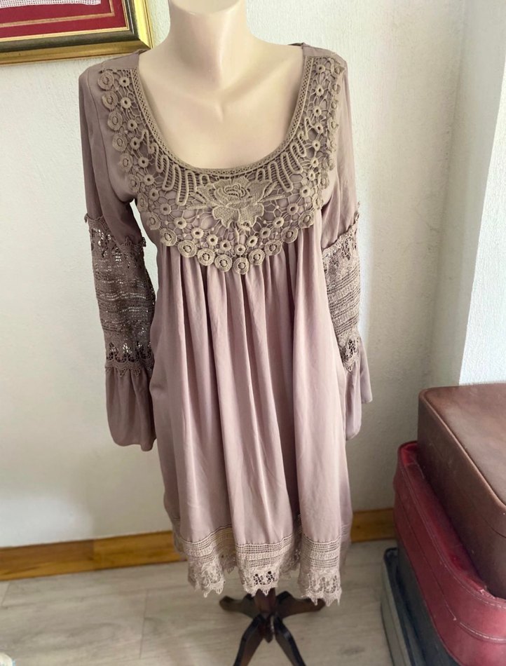 Toplamda 2 kez TV çekiminde giydim. Romantik bir elbisedir, dökümlü yumuşak kumaşı ve dantel detayları ile artık pek benzeri olduğunu sanmam. M-L bedenler, hâttâ hamileler dahî giyebilir ama kolları kalınca olanları dantel işlemeler nedeniyle biraz kasıp sıkabilir. İstenirse bel kuşağı ile de kullanılabilir. Özellikle yüksek topuklarla çok şık duran hakiki vintage bir elbisedir. Bütün ilânlarım için makûl teklifleri değerlendiririm çünkü 2.elin ulaşılabilir fiyatlı olması ve dönüşüme hizmet etmesi gerektiğine inanıyorum.