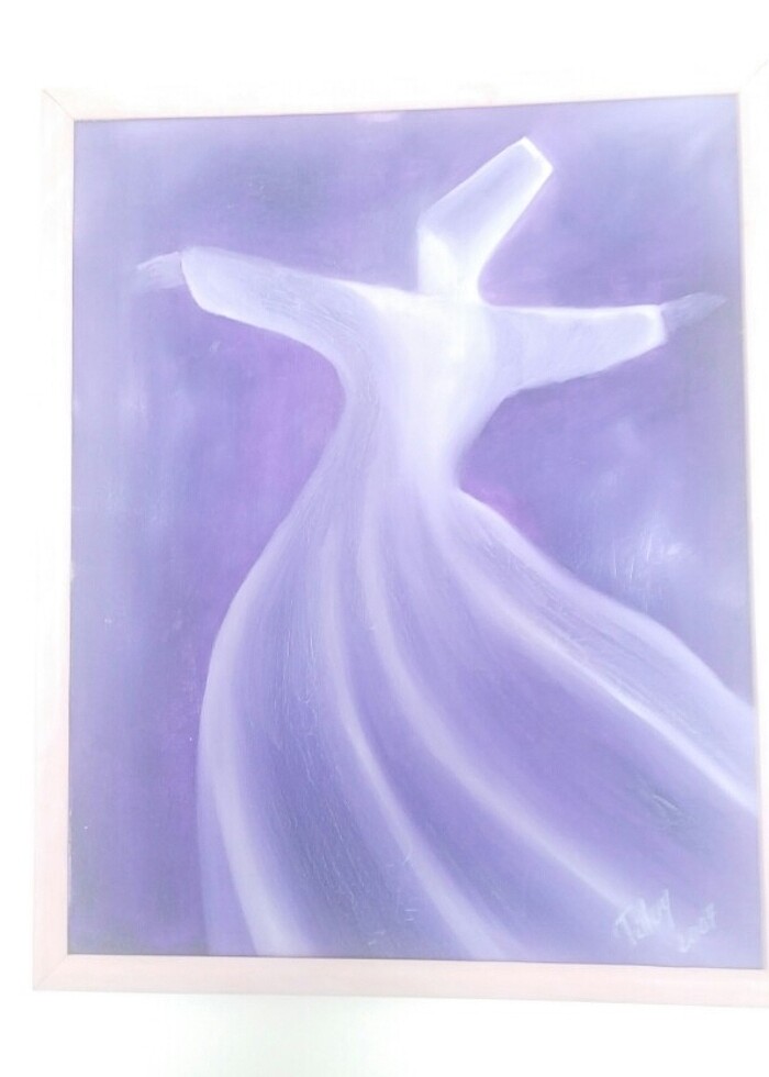 Semazen konulu yağlıboya tablo. Ressam Tülay Uğurlu'ya ait. Tuval üzerine çalışılmış. Ölçüleri 44x54