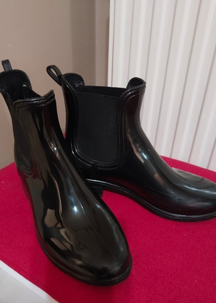 Parlak siyah yağmur botu 2 veya 3 kez giyildi hiçbir defosu yok
