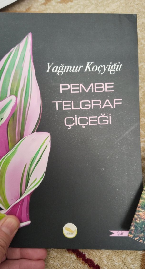 Yağmur Koçyiğit'in "Pembe Telgraf Çiçeği" adlı şiir kitabı, çiçek temasına sahip kapak tasarımıyla Türkçe şiirler içerir.