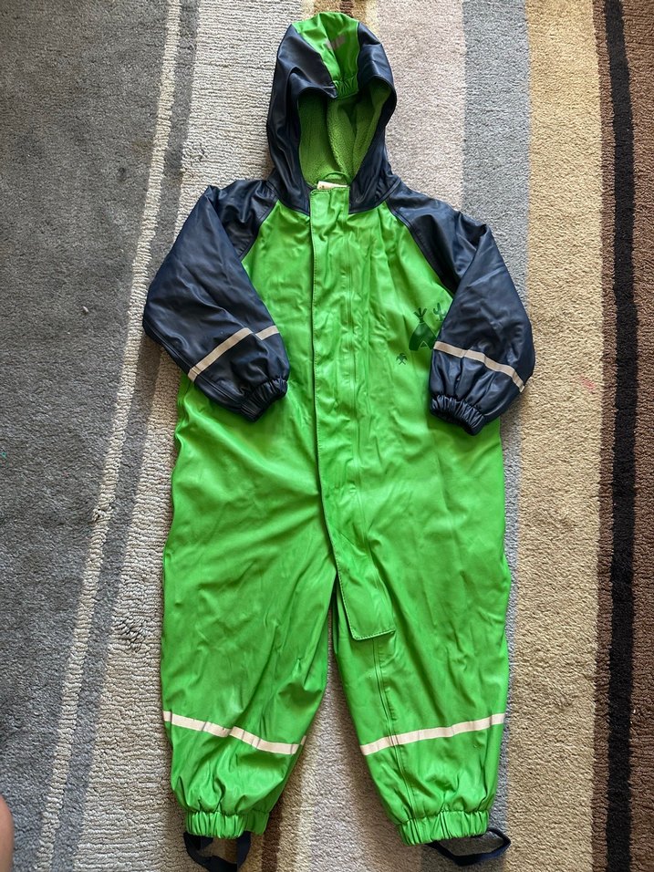 Fermuarlı, içi polarlı yağmur tulumu. Oğlum 3,5 yaşına kadar kullanabildi. Geniş ve rahat kesimi var. Su geçirmiyor. İmpidimpi marka