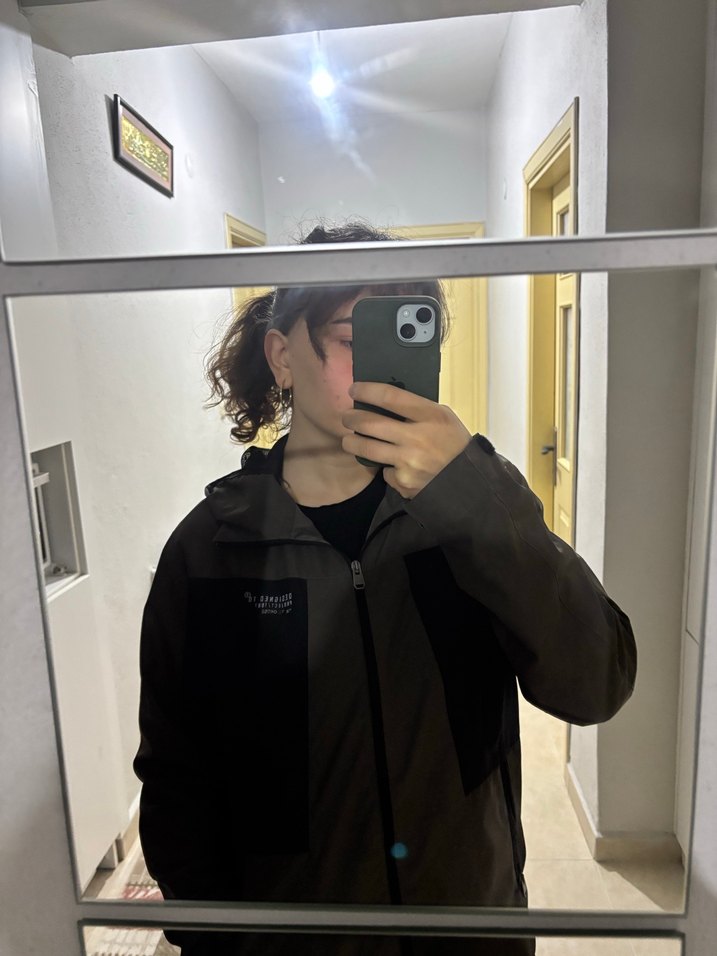 Haki yeşili. Unısex kapişonlu yağmurluk.