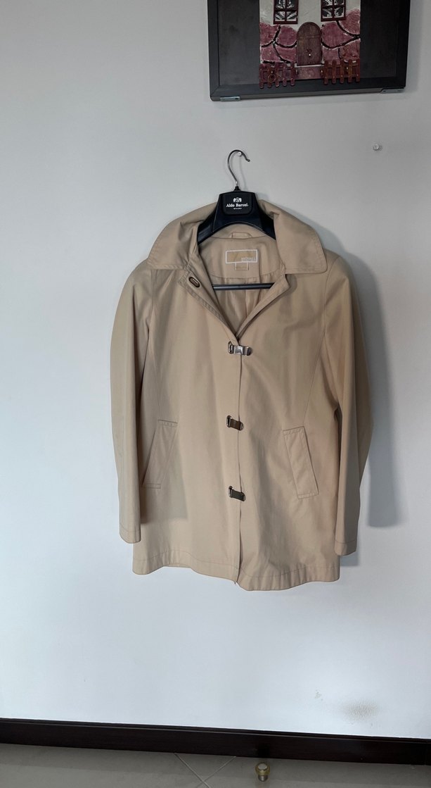 Diz ustu kapusonlu krem rengi yagmurluk