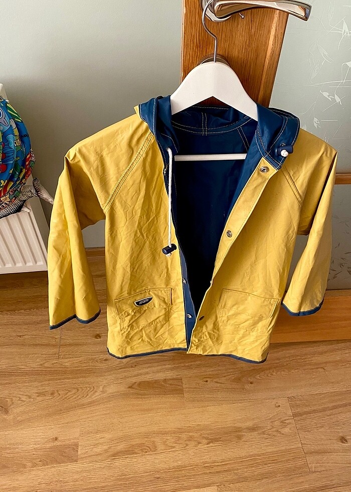 Ürün yurtdışından alındı. Ürün çift taraflı kullanılıyor hem mavi hem de sarı tarafını kullanabilirsiniz. Üründe herhangi bir Defoe yok sadece düğmelerinden bir yok, onu da kolaylıkla çözebilirsiniz. Ölçülere bakarak alım yapınız. Omuzdan boy ölçüsü 72 cm.. koltuk altından eni ise 47 cm .. kafanıza takılan her şeyi sorabilirsiniz. İade kabul etmiyorum.
