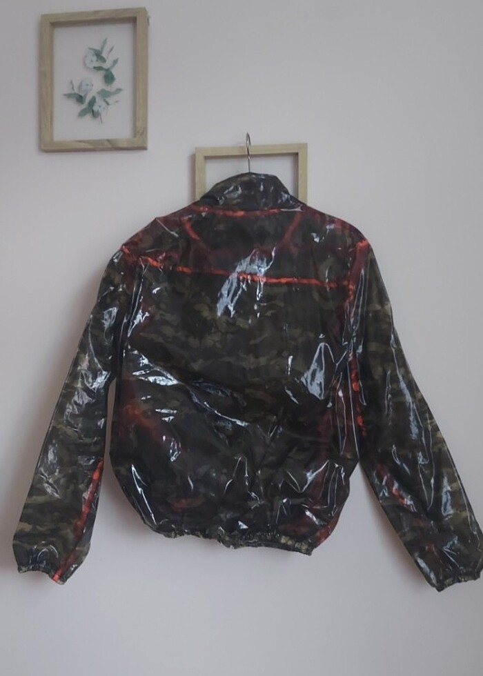 kamuflaj desenli yarim yağmurluk hiç giyilmedi