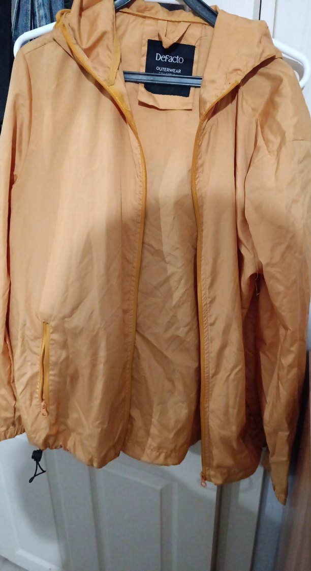 Sarı renkli, parlak sentetik kumaştan yapılmış, fermuarlı cepli unisex midi yağmurluktur. Geniş kesimi ve uzun kolları vardır, günlük kullanım için uygundur. ☔temiz sorunu yoktur.