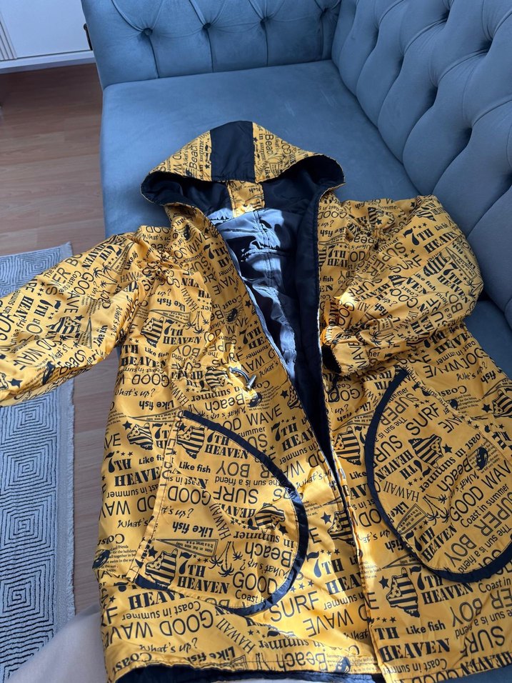Mont kalınlığında omuz bel ve kolları lastikli çift taraflı harika desenli ve sorunsuz yağmurluk, xs- s-m bedenler tercih edebilir salaş bir mont çünkü markası bilinmiyor