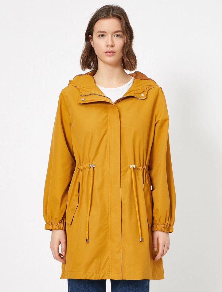 Koton marka Hardal Renk Beli Ayarlanabilir Kapüşonlu yağmurluk Birkaç kez giyildi Yırtık sökük yoktur 42 beden