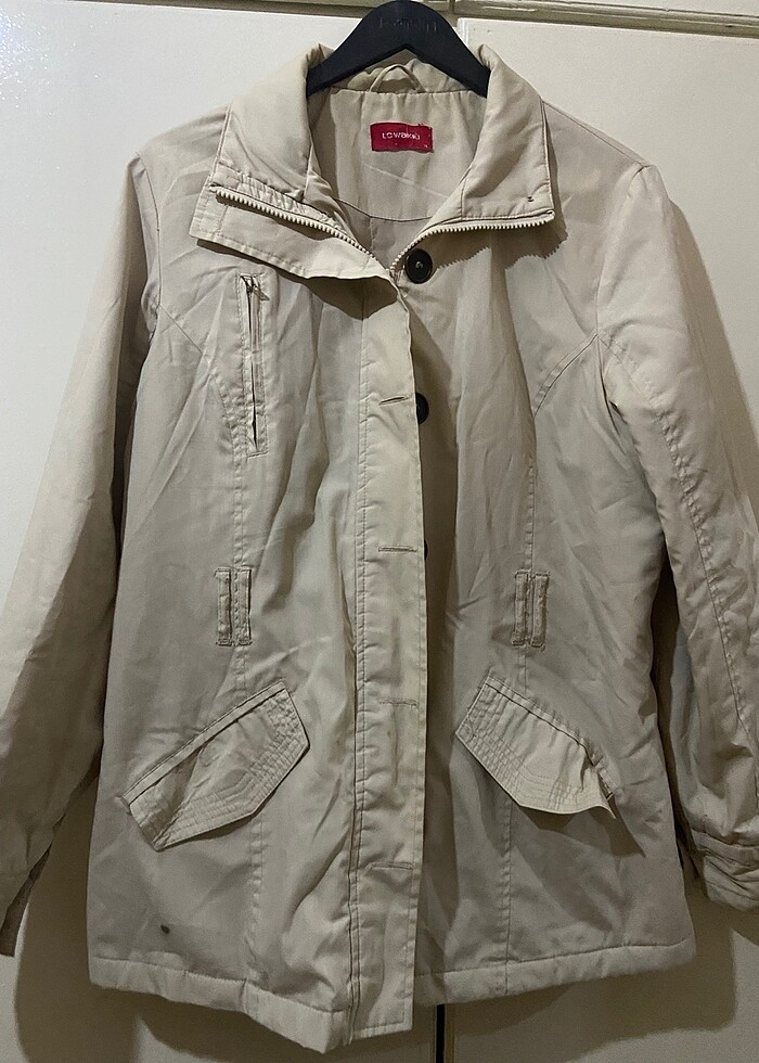 Sayılı giyildi ve uzun zamandır kullanmadığım için fazlalıktan satıyorum.Kemerini kaybettim. Sadece gösterdiğim yerde defosu var biraz vintage tarzı bi ceket etiketinden XL yazıyor ama m-l giyenlere de olur.