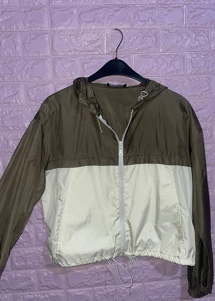 Yağmurluk ince ceket fermuarlı beli lastikli orta boy kapüşonlu