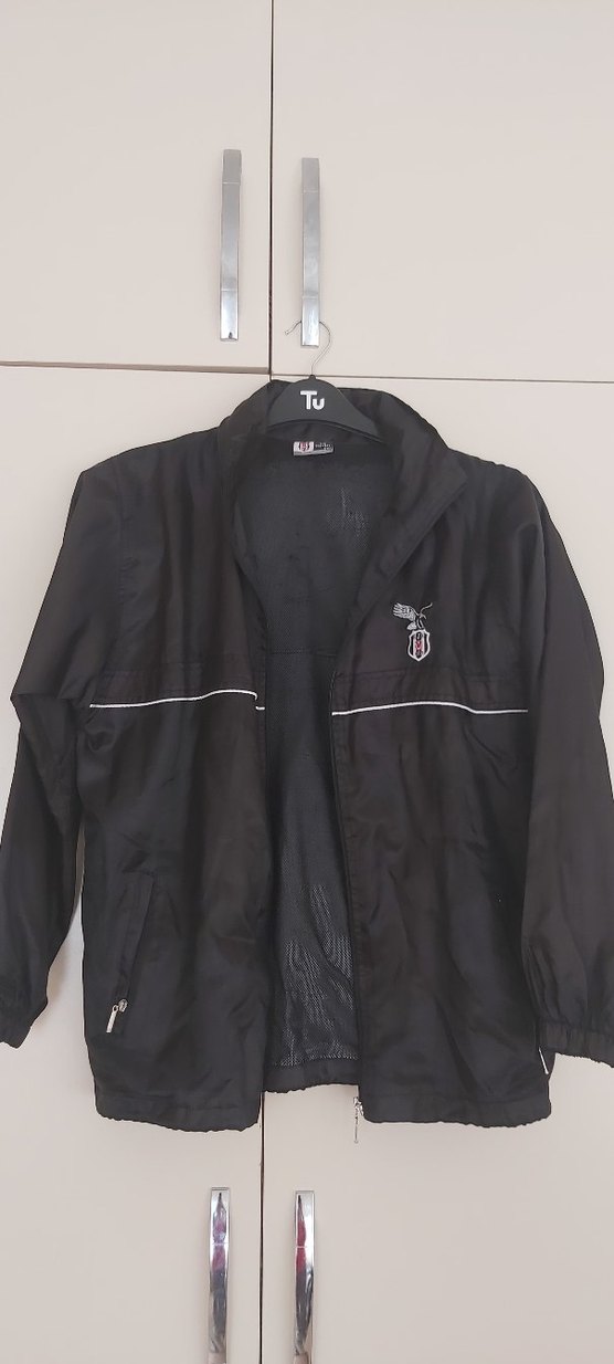 Siyah renkli, uzun kollu, notched lapel yakalı, bol kesim erkek rüzgarlık. Fermuarlı cepleri ve fleece astarı vardır. Spor ve günlük kullanım için uygundur. lisanslı ürün