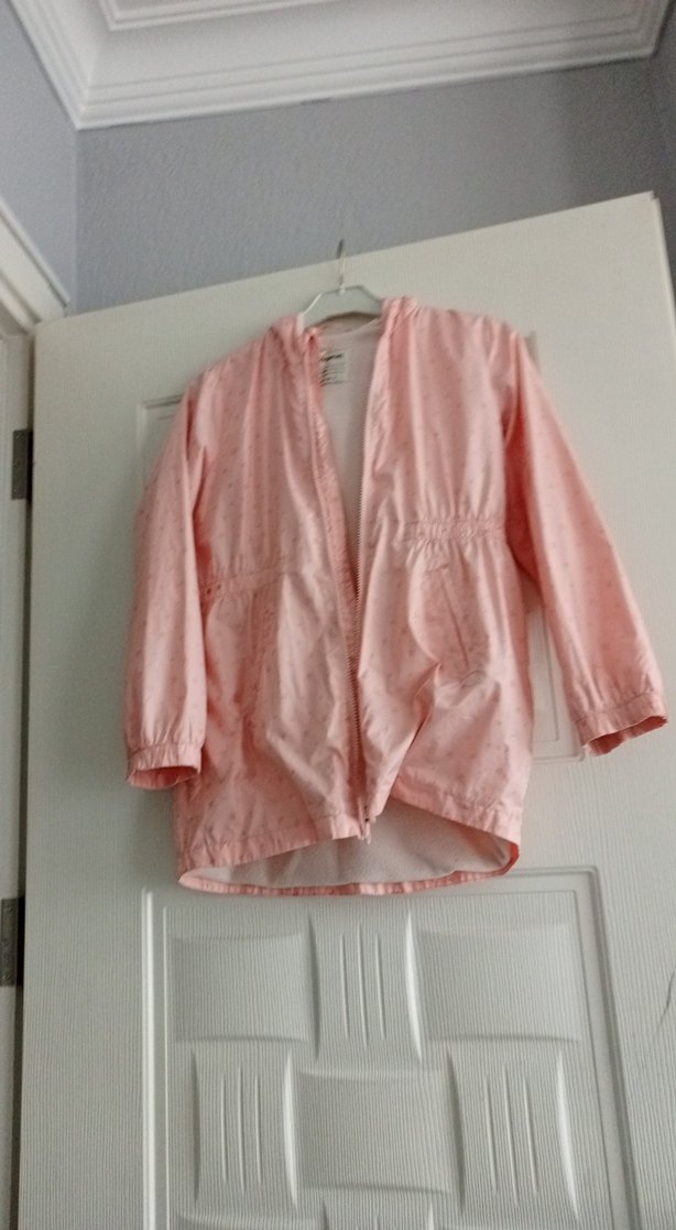 Pastel pembe renkli, kız çocuk yağmurluğu. fermuarlı notched lapel yakalı ve rahat bol kesimlidir. ️kapşonlu dur.