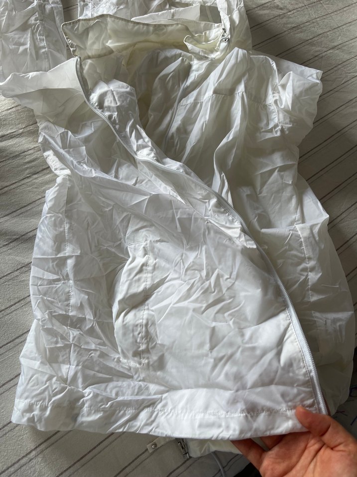 Beyaz yağmurluk rüzgarlık bir kaç defa kullandım toplandığında çanta gibi oluyor en son resimlere ekledim kalitesi çok iyi s-m-l uyumlu