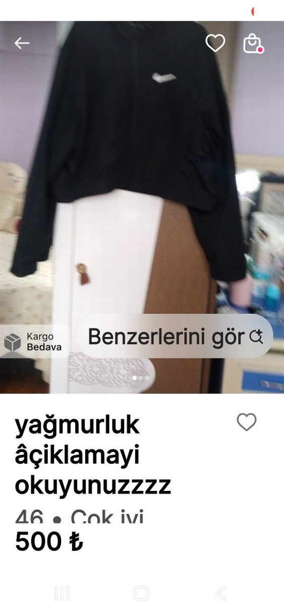 yağmurluk ama orjinal değil ama belli olmuyor hiç orjinal olmadığı