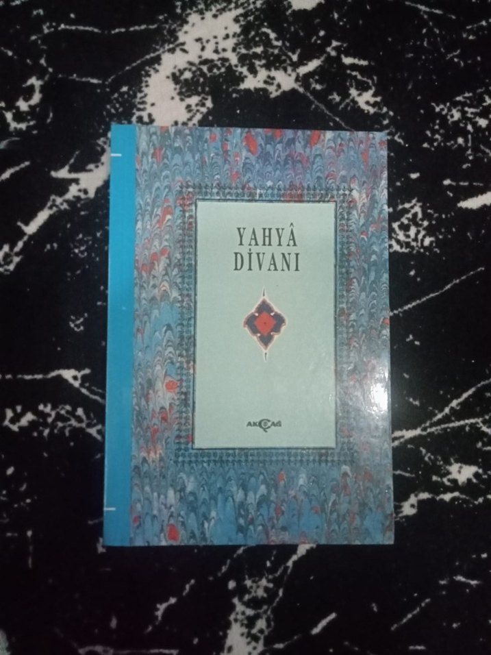 "Yahya Divanı" adlı Osmanlıca kitap, klasik Osmanlı şiirleri ve edebiyatını içerir, mermer desenli kapaklıdır.