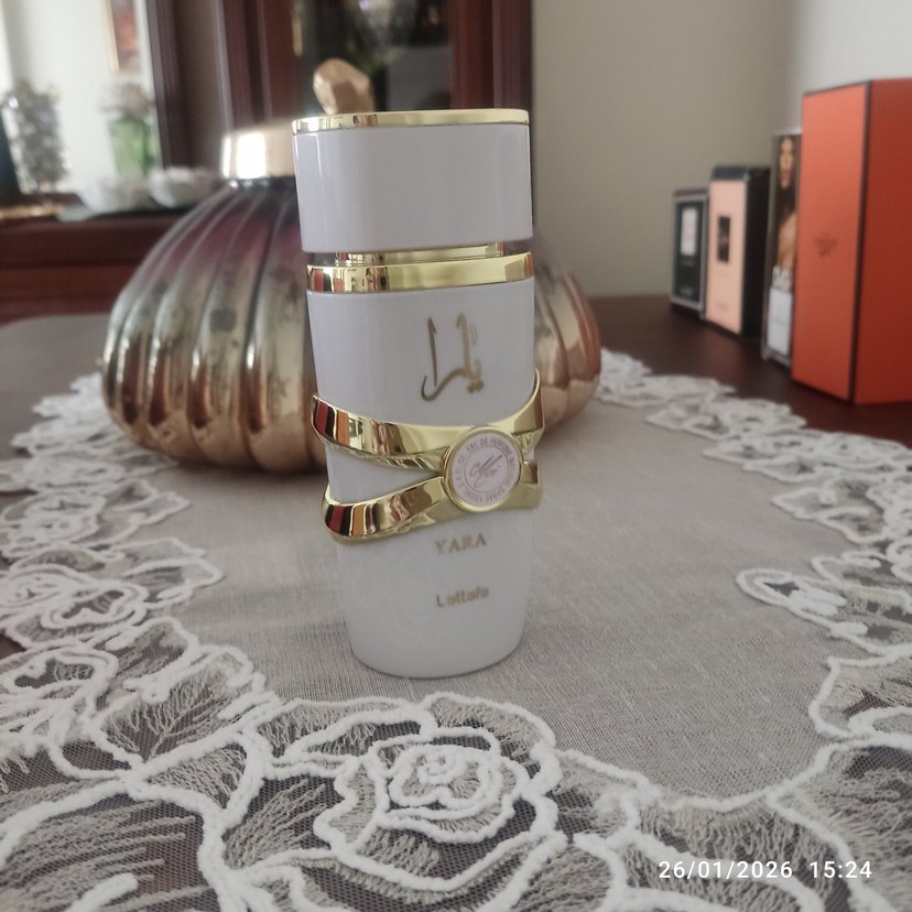 Şık beyaz ve altın renkli şişede YAIA kadın parfümü. Zarif fiyonk detayı ve pürüzsüz yüzeyi ile dikkat çekiyor.