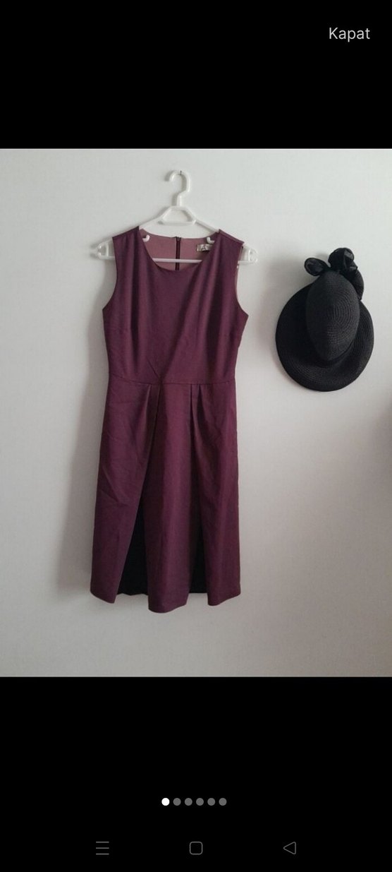 yakalı, kolsuz midi elbise. Dökümlü detaylı, sentetik kumaştan, ofis için uygun, rahat kesim.