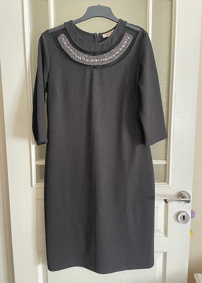 Kumaşı Esnek Yakası taş ve tül detaylı Kumaşı kendinden sim detaylı Turvakar kol Şık Gece Elbisesi