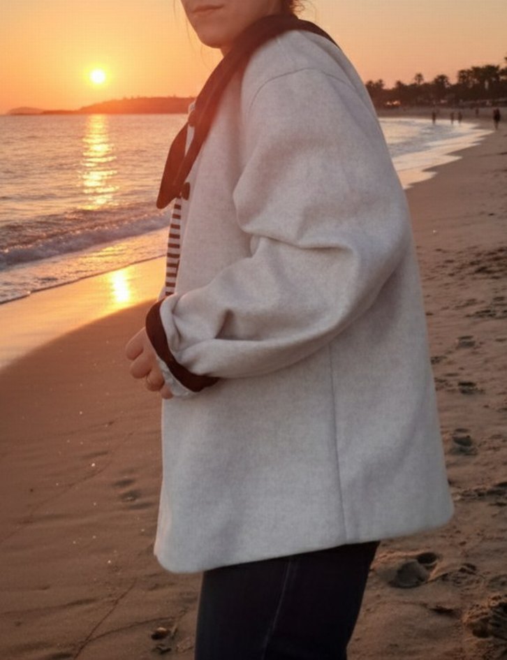 yakalı düğmeli orta boy oversize kaşe ceket