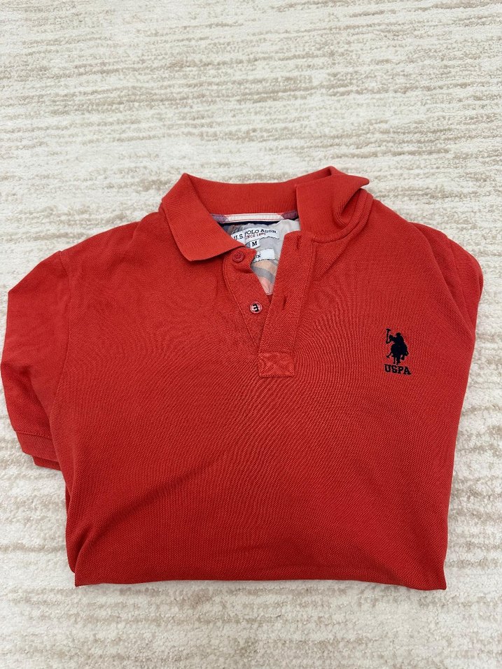 Düğmeli yakalı ve kısa kollu, parlak nar ciçeği tonunda ışiktan kirmizi gibi çikmis , yumuşak ve sıcak kumaştan yapılmış, dar kesim erkek polo thirt