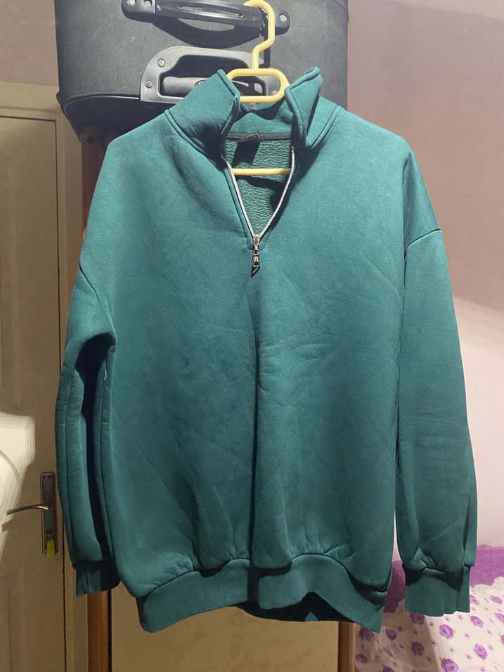 Yakalı Yeşil Sweatshirt