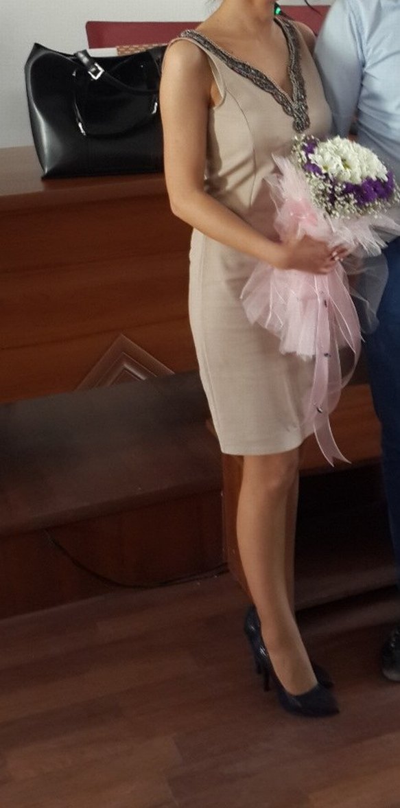 yakası boncuk işleme detayli v yaka şık ve zarif mini elbise