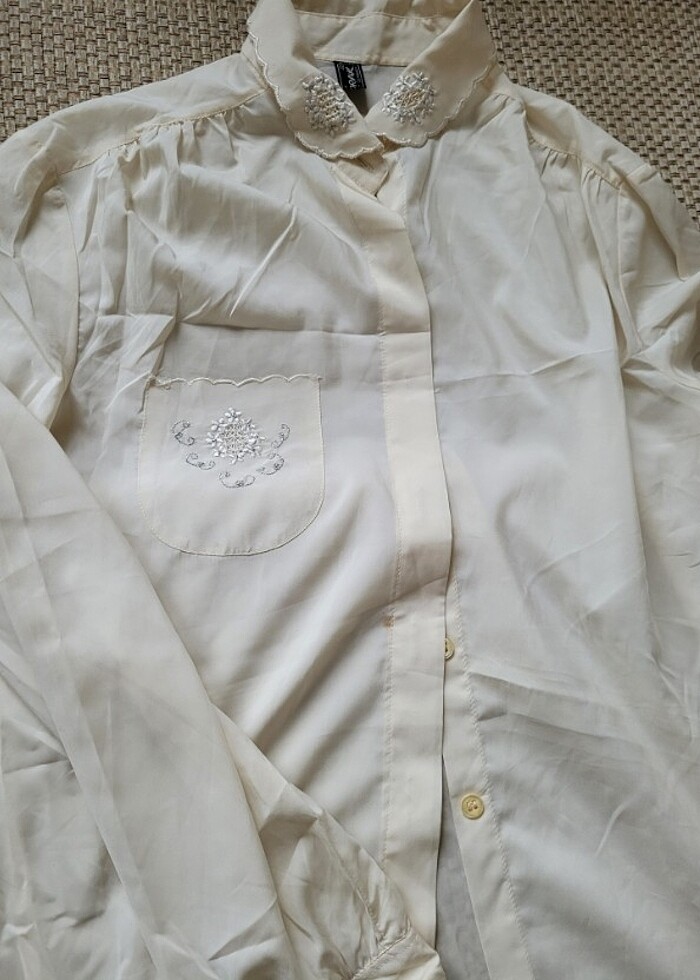 Yakası, cebi işlemeli, ipekli yumuşacık gömlek